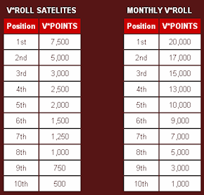 Come in the top 10 in one of these tourneys and you will have won your seat at the exclusive 'Monthly V*ROLL' giving away an incredible 100,000 VPOINTS!